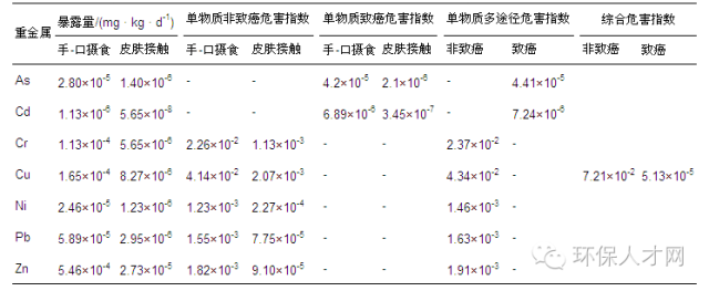 3)污泥樣品中重金屬對兒童和成人產生的非致癌綜合危害指數分別為2.02×10-1和7.21×10-2,均低于非致癌風險警戒值“1”;致癌綜合危害指數分別是1.44×10-4和5.13×10-5,其中,成人致癌風險在USEPA提供的可接受區間1×10-4~1×10-6范圍內,兒童致癌風險指數超出可接受區間;手-口攝食是兒童和成人主要的暴露途徑,重金屬元素Cu是非致癌風險主要的影響因子,而As是主要的致癌風險影響因子.